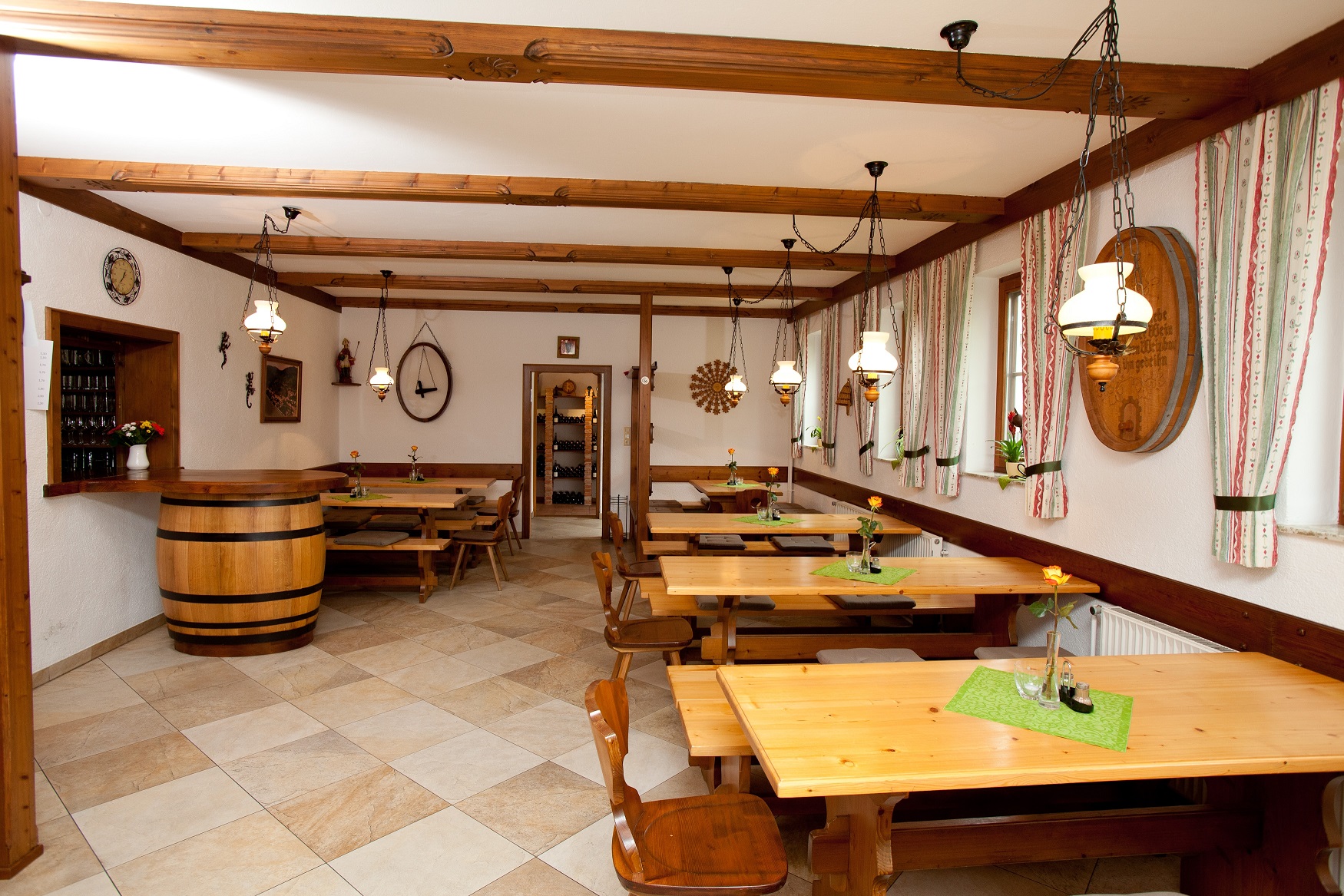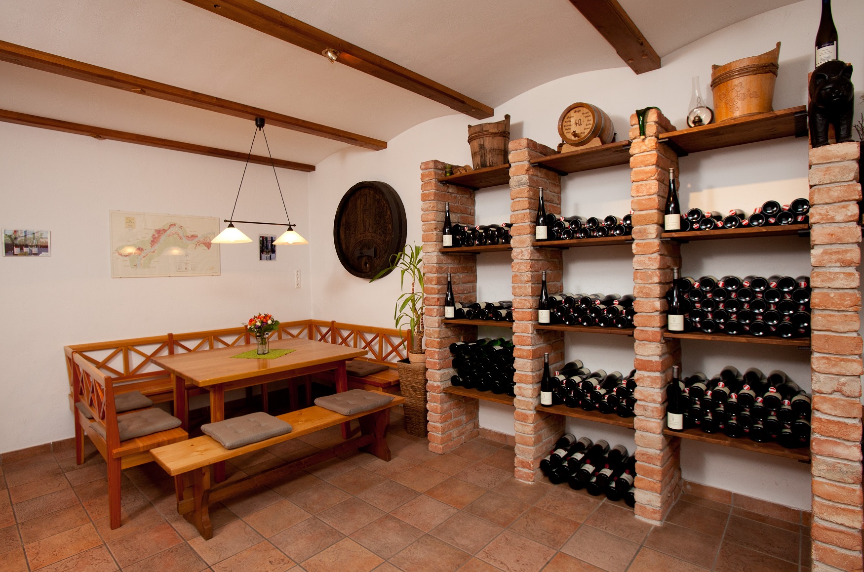 - Der Heurigenbetrieb fasst insgesamt rund 130 Sitzplätze, davon etwa 70 innen und 60 außen