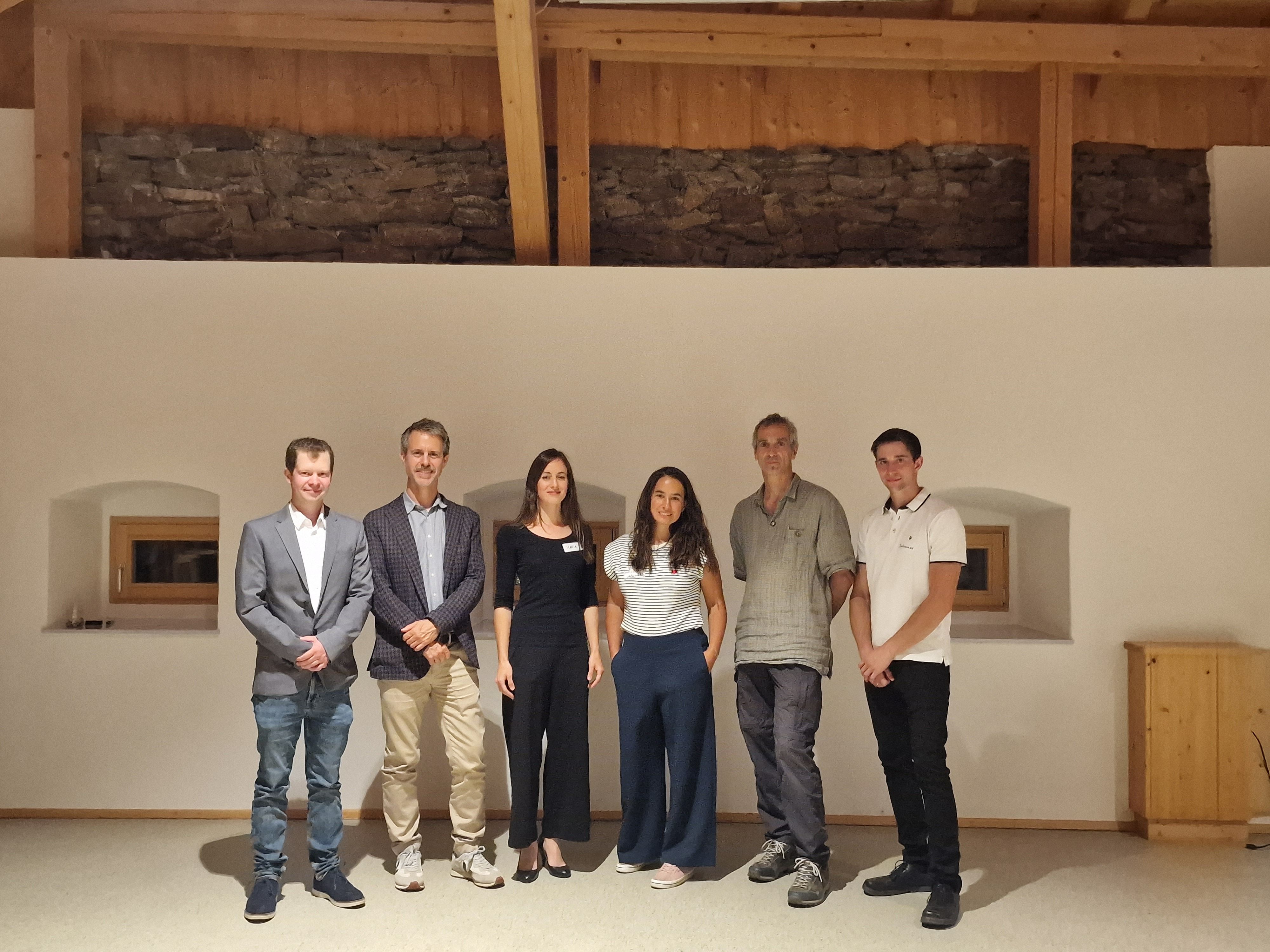 Bild 1: Projektinfo Veranstaltung in Maria Laach, Vortragende. v.l.n.r.: Christian Redl (HBLA Klosterneuburg), Michael Wagner (LEADER Wachau-Dunkelsteinerwald), Maria Vogel und Mathilde Stallegger (Naturpark Jauerling-Wachau), Josef Reithner (ARGE NÖ Christbaum- und Schmuckreisigproduzenten), Johannes Sommer (Biohof Sommer). © npjw