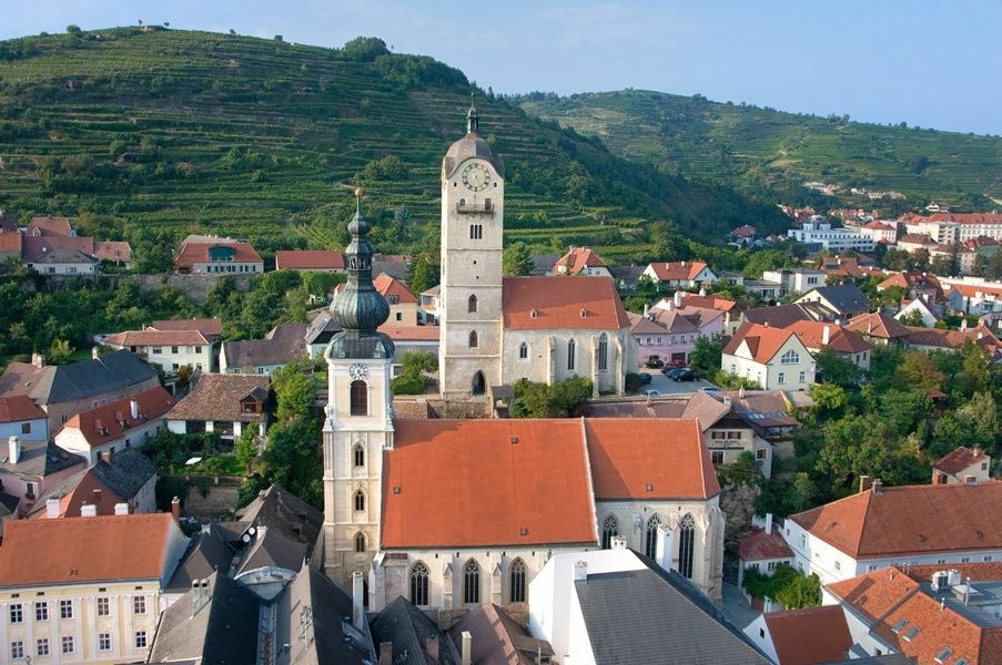 Die Lage am Strom, die lieblichen Weingärten, Waldhänge und Felsformationen rundum haben Dürnstein zu einem der beliebtesten österreichischen Reiseziele gemacht. Der blaue Turm von Stift Dürnstein ist weithin sichtbar, und in der weitläufigen, aussichtsreichen Burgruine wurde einst König Richard Löwenherz gefangen gehalten. Bald nachdem Sie den Weinort Unterloiben durchquert haben, erreichen Sie Krems, das Ziel dieser Etappe.