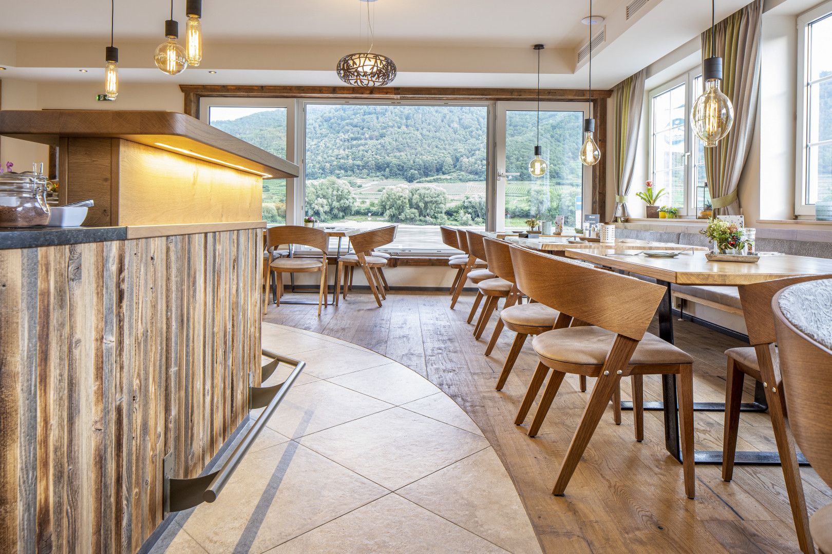 Neben der Beherbergung lädt das hauseigene Heurigenrestaurant mit sonniger Terrasse direkt an der Donau zum Verweilen ein. Hier werden regionale Spezialitäten und hauseigene Weine aus dem Weingut Graben Gritsch serviert. Die ruhige Umgebung und die Nähe zum Bahnhof machen das Donauschlössel zu einem idealen Ausgangspunkt für Ausflüge in die Wachau.